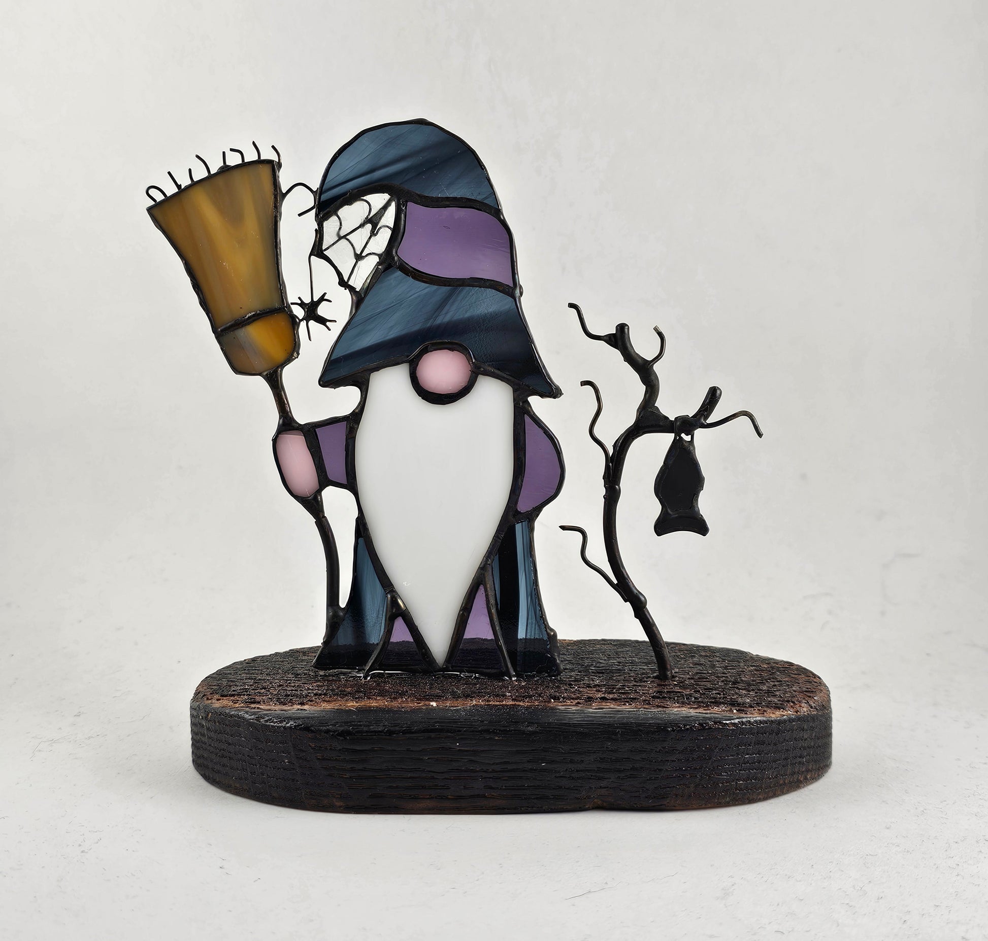Halloween Gnome on Wood Base Stained Glass