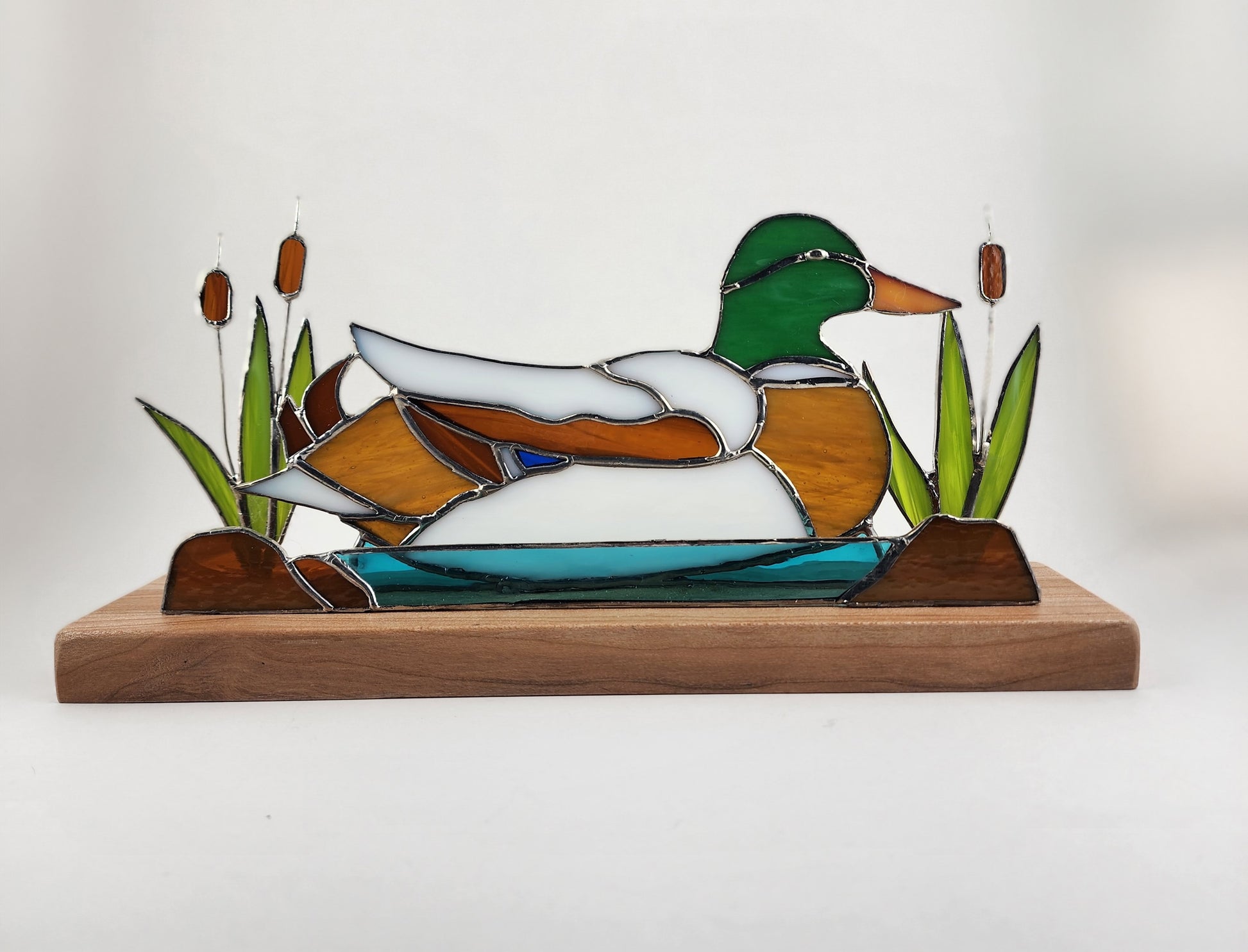Mallard on Wooden Base Stained Glass